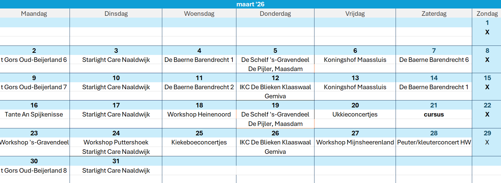 - Muziek op Schoot cursus 10:00-10:45 uur 2/9/16/23/30 september, 7/14/23/28 oktober 2025 Starlight Care in Naaldwijk.